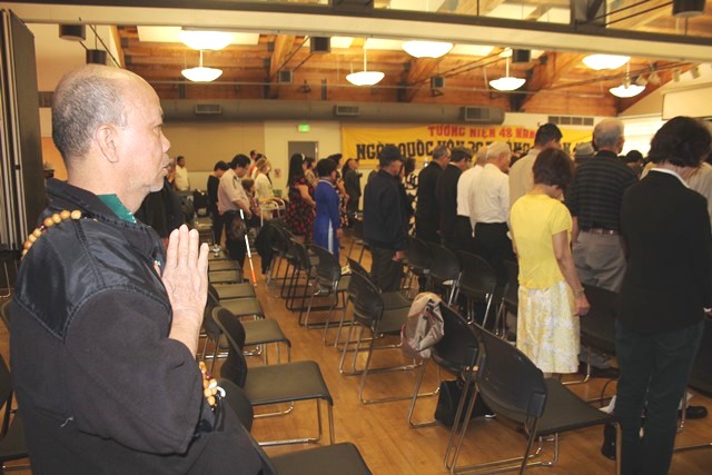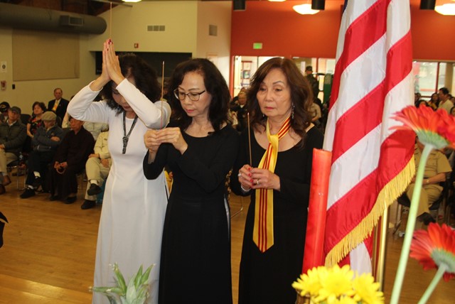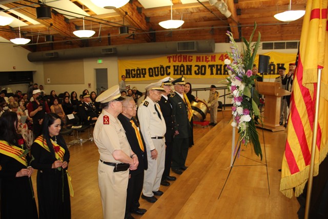 “Hôm nay chúng ta cùng nhau tề tựu nơi đây, không phải để khóc than với đau thương, buồn tủi; mà chúng ta cùng nhau tập họp nơi đây, trước hết là để tỏ lòng tri ân, tưởng nhớ đến những vị tướng lãnh cùng Quân-Dân-Cán-Chính VNCN đã tuẫn tiết, hy sinh hay tử nạn vào những ngày tháng Tư Đen. Chúng ta không tìm an lạc nơi quê người, mà luôn thiết tha cùng toàn dân VN với mọi tầng lớp đồng bào, liên kết với nhau để biến đau thương thành sức mạnh, để cùng nhau lật đổ và thay thế cho bằng được đảng CSVN đang tàn phá quê cha đất tổ, để dành lại quyền tự quyết cho dân tộc Việt Nam với tự do, nhân bản, hạnh phúc và phú cường.