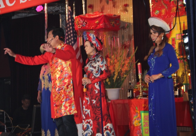 Chương trình lễ giỗ Tổ đã được mở đầu với nghi thức chào cờ Việt-Mỹ trang trọng.