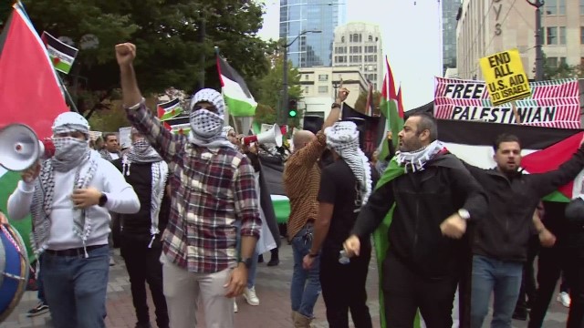 Cuộc biểu tình nhằm phản ứng trước vụ các chiến binh của tổ chức Hamas, một nhóm dân quân người Palestine, bí mật tấn công vào Israel và giết chết gần 1.200 người.