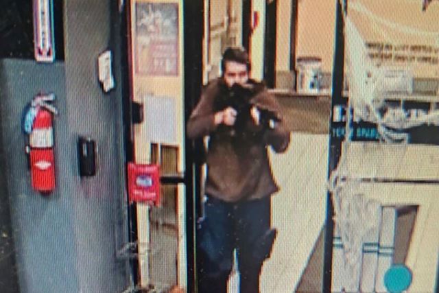 Nhà chức trách địa phương đã công bố một số hình ghi nhận được từ camera giám sát, cho thấy nghi phạm là một người đàn ông da trắng mặc quần đen, áo nâu và mang theo súng trường..