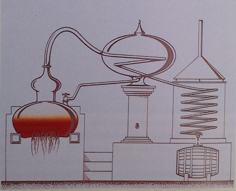 Nên nhắc, rượu sôi và bốc hơi ở 78.3 °C còn nước sôi và bốc hơi ở 100 °C. Đó là nguyên tắc để tách rượu ra khỏi nước. Alcool sẽ mang theo mùi thơm của trái nho, phần còn lại do thùng sồi thêm vào trong giai đoạn lão hóa.