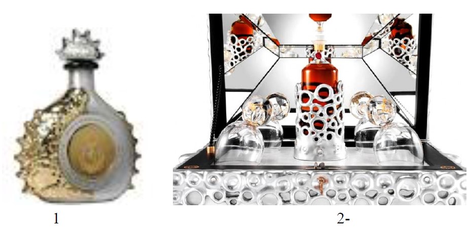Chai làm bằng platine vàng nạm 6000 viên kim cương, Chứa 100ml cognac Héritage.