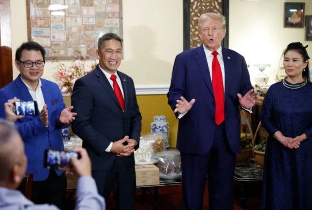 Sau đó, cựu tổng thống Trump đã ký tặng và nói chuyện với những mọi người có mặt trong nhà hàng và nếm thử món ăn Việt.