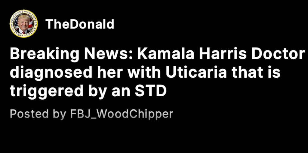 Báo cáo từ tòa Bạch Ốc cho biết bà Kamala hiện đang mắc bệnh Hives, còn gọi là Urticaria.